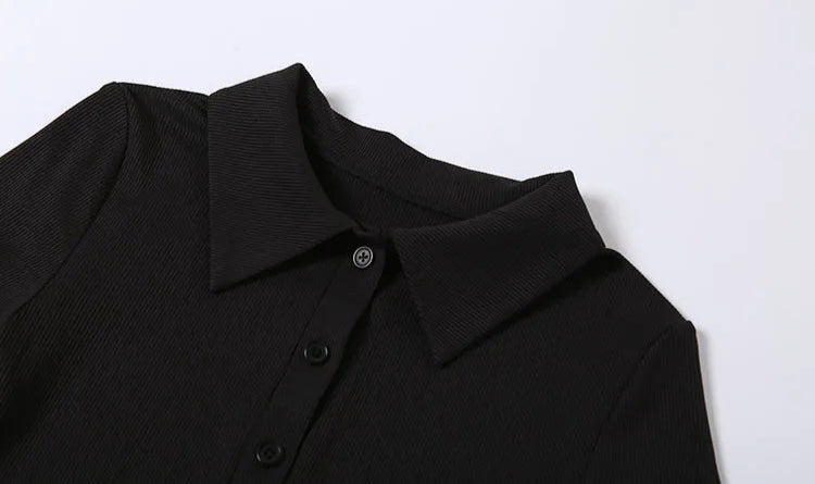 Este modelo se destaca pela gola clássica , realçada por botões decorativos que conferem uma elegância sutil. As mangas regulares equilibram elementos formais e casuais, enquanto o fecho tipo pulôver garante praticidade sem comprometer a silhueta clean e refinada.